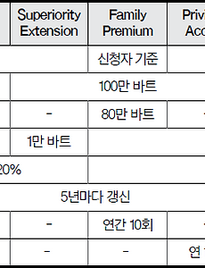 그 밖에도 태국 엘리트라는 프로그램이 있습니다.비자와 비슷하지만 멤버십 개념이라고 보시면 됩니다.태국 엘리트 프로그램은 VIP처럼 국빈급 대우를 받을 수 있는 공항 영접 서비스, 리무진 서비스, 골프 투어, 마사지, 건강검진 서비스, 쇼핑 및 호텔 할인, 금융 서비스 등 다양한 혜택을 누릴 수 있습니다.다만 태국 엘리트 프로그램은 금액이 비교적 높은 편에 속해 있습니다.아래 사진을 참고해주세요.